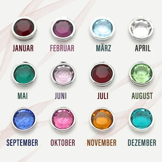 Diese Halskette wird mit einem Engelsflügel, einem Edelstahlanhänger mit der Aufschrift „Ich werde dich für immer in meinem Herzen tragen“ und einem 15 mm großen Edelstahlanhänger mit dem Namen und dem Geburtsstein Ihrer Wahl geliefert.